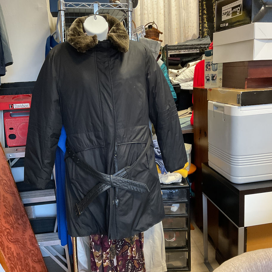 Women’s Winter Coat w/Belt & Fur Collar Black Size XL